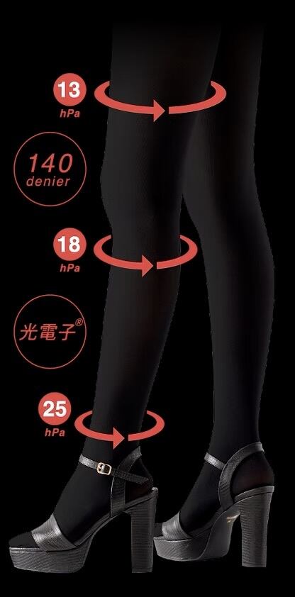 足首からふとももにかけて段階的に圧を減少させる、段階着圧設計で、引き締まった美脚ラインをつくります。